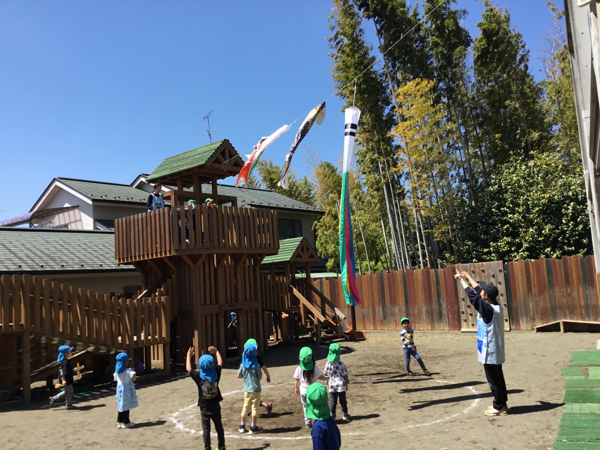 こいのぼりの下で元気いっぱい遊んでいます!