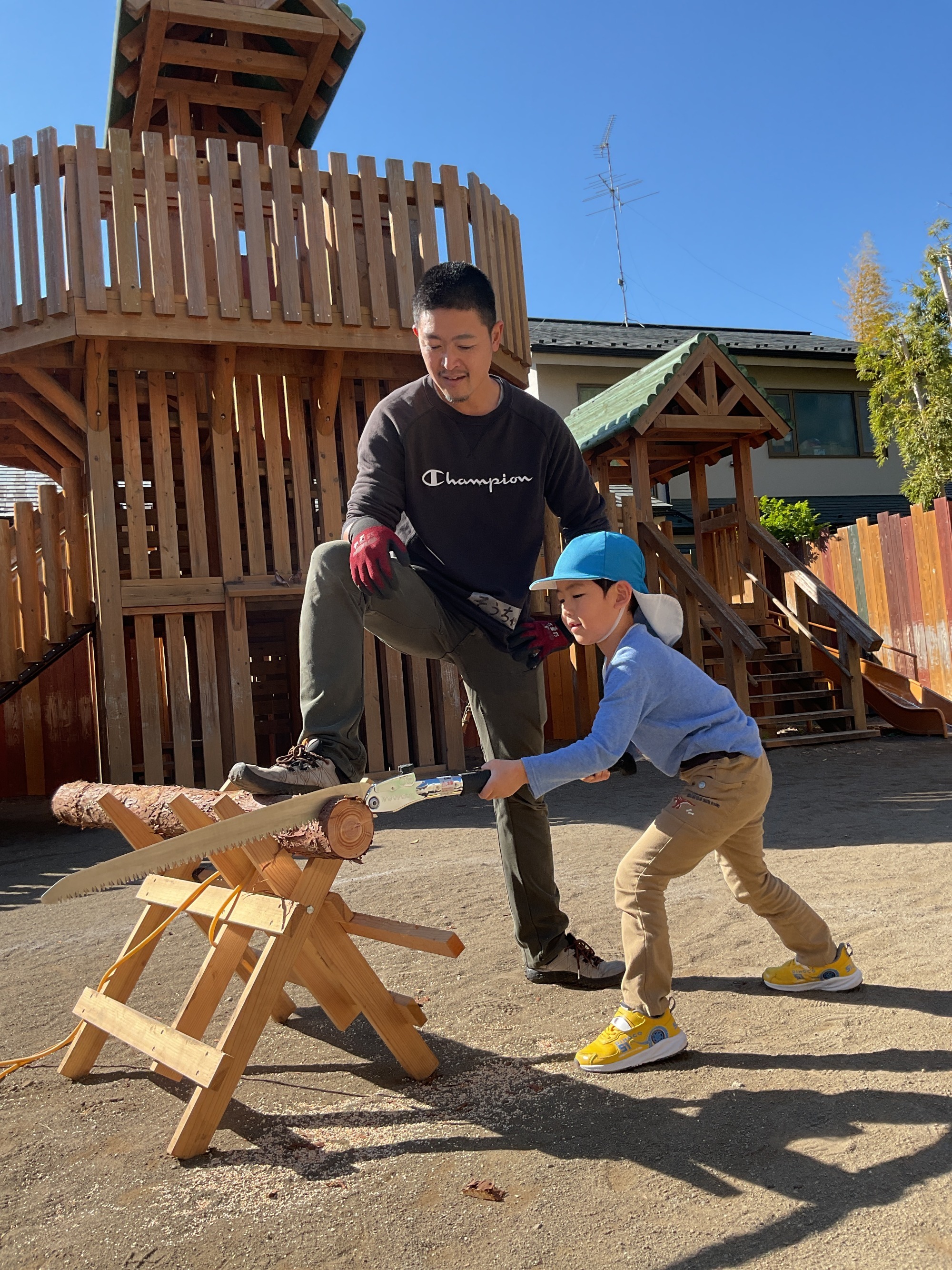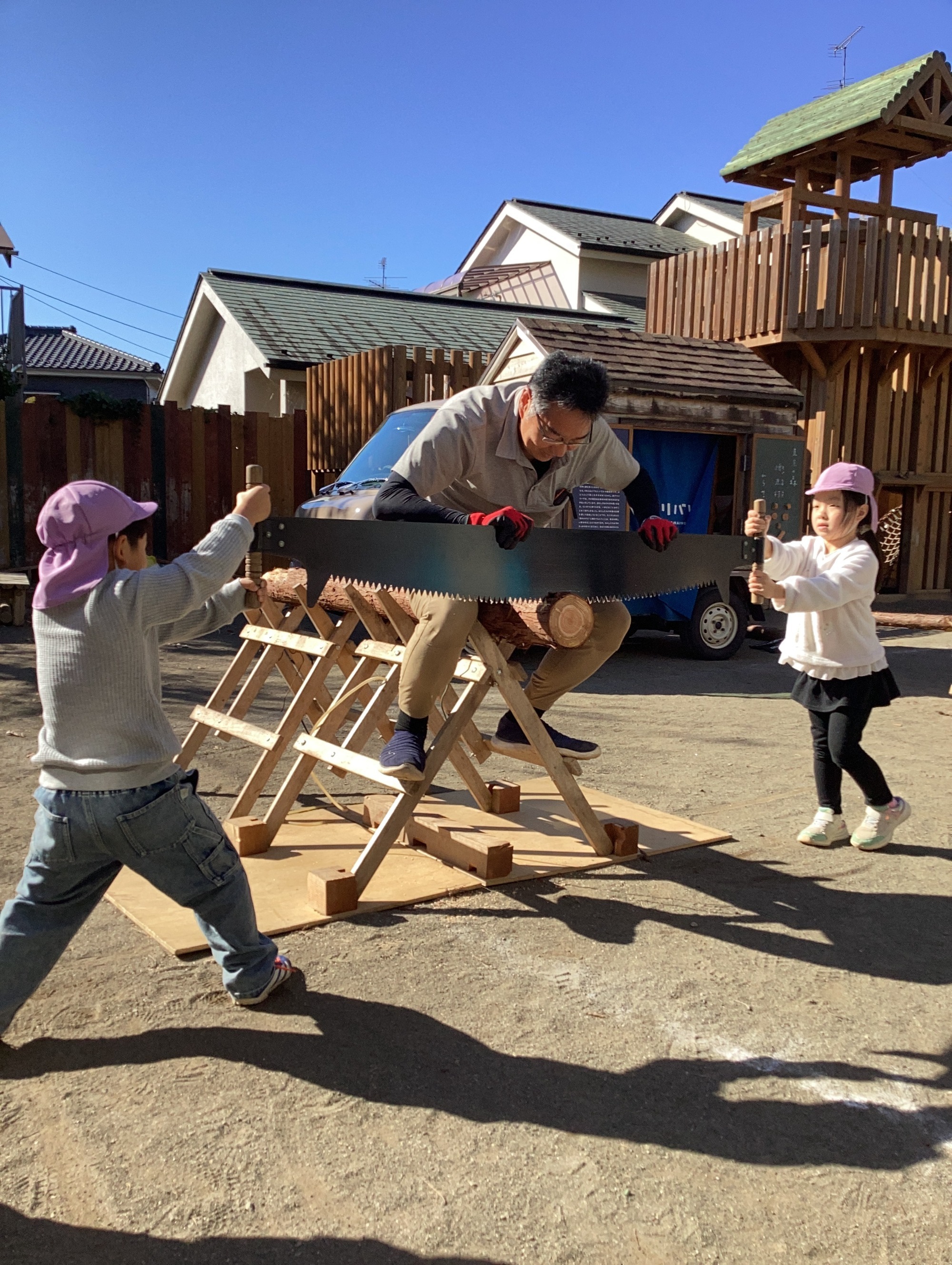 大きなノコギリに、みんな驚いていました。