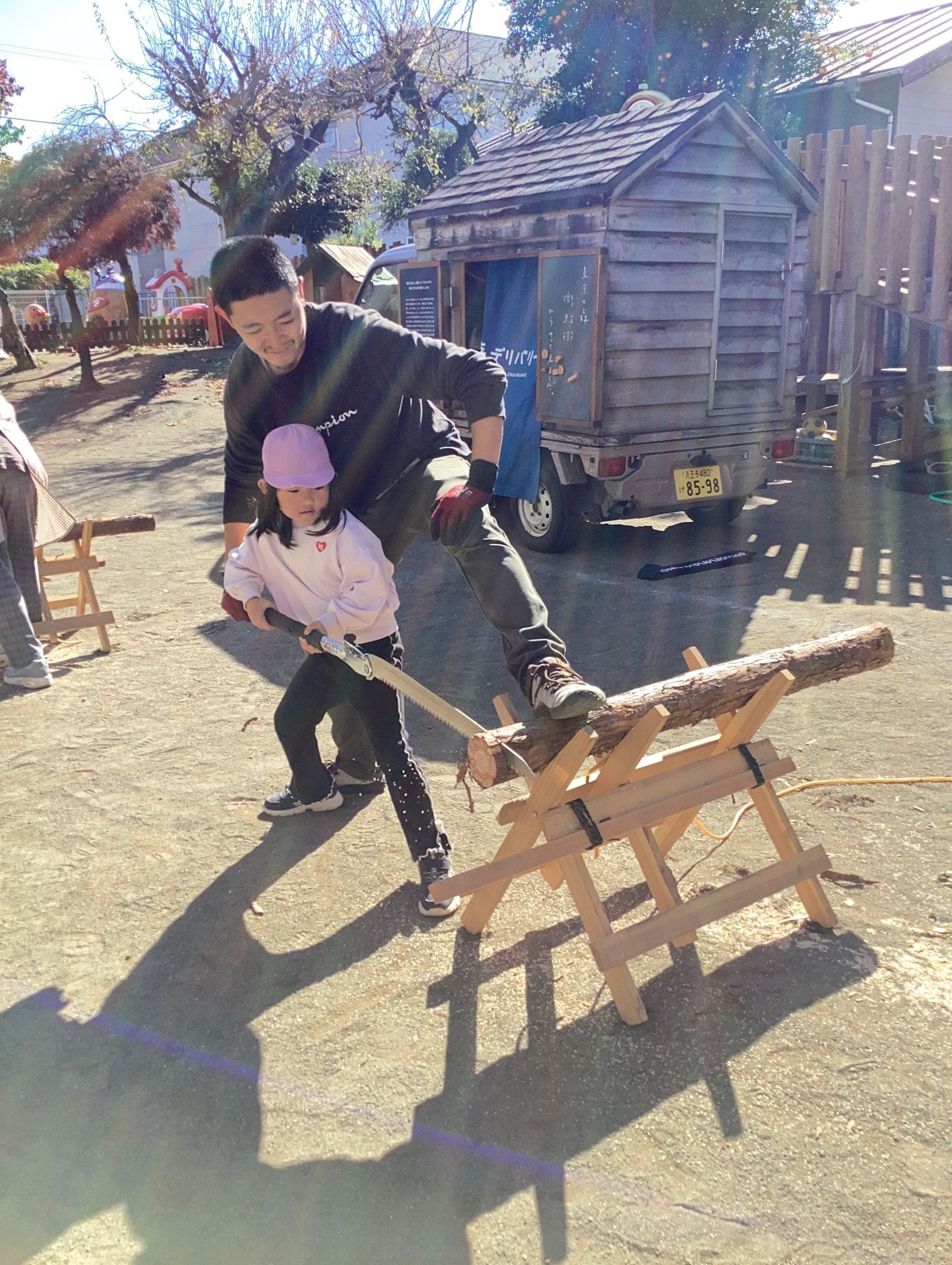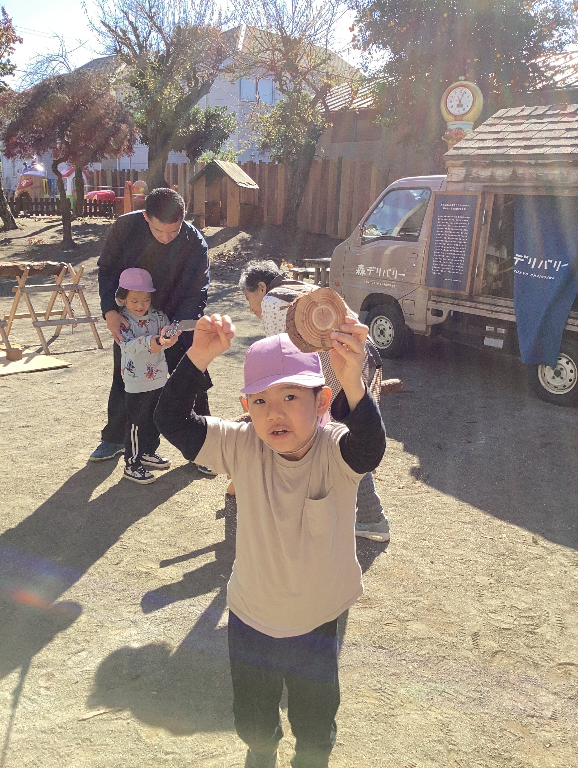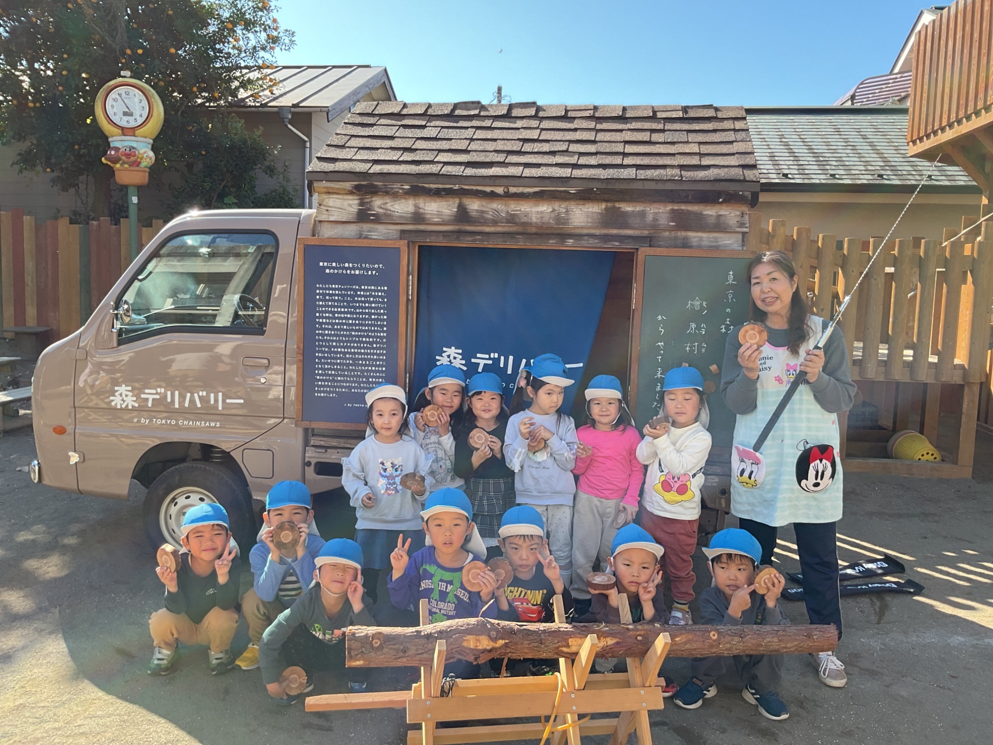 東京チェンソーズさんに来ていただき、木育体験しました。